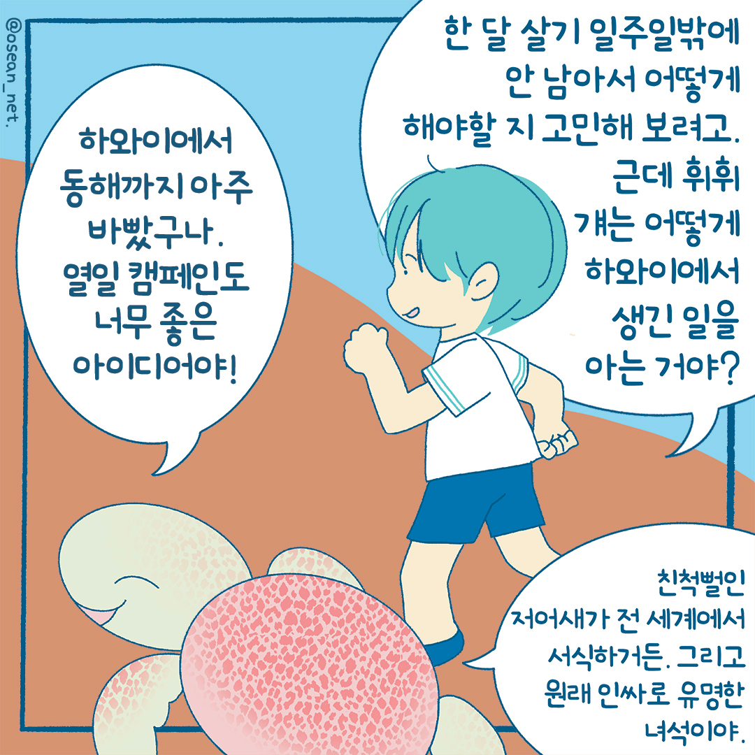 오션에서는 올해 열일캠페인을 시작해 다양한 방법으로 홍보하고 있습니다. 열일캠페인은 가장 많이 발견되는 해양쓰레기 Top10을 뽑아 10분의 1로 줄이자는 캠페인입니다. 최근 오션 인스타그램에 연재된 열일캠페인 인스타툰을 소개합니다. 11월은 7, 8화입니다.